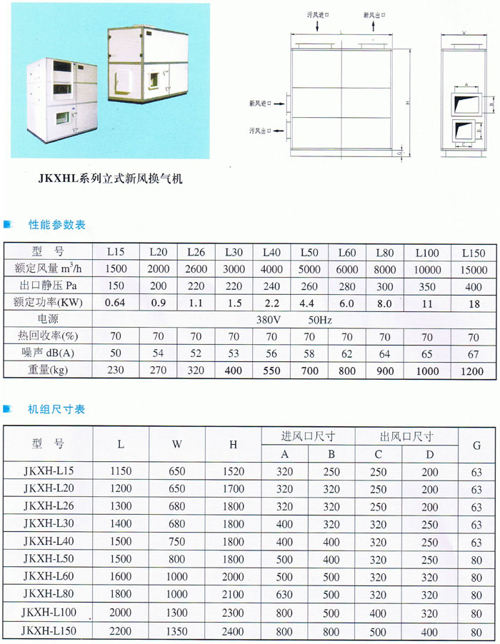 JKXH-L750~1500立式全熱交換新風(fēng) |